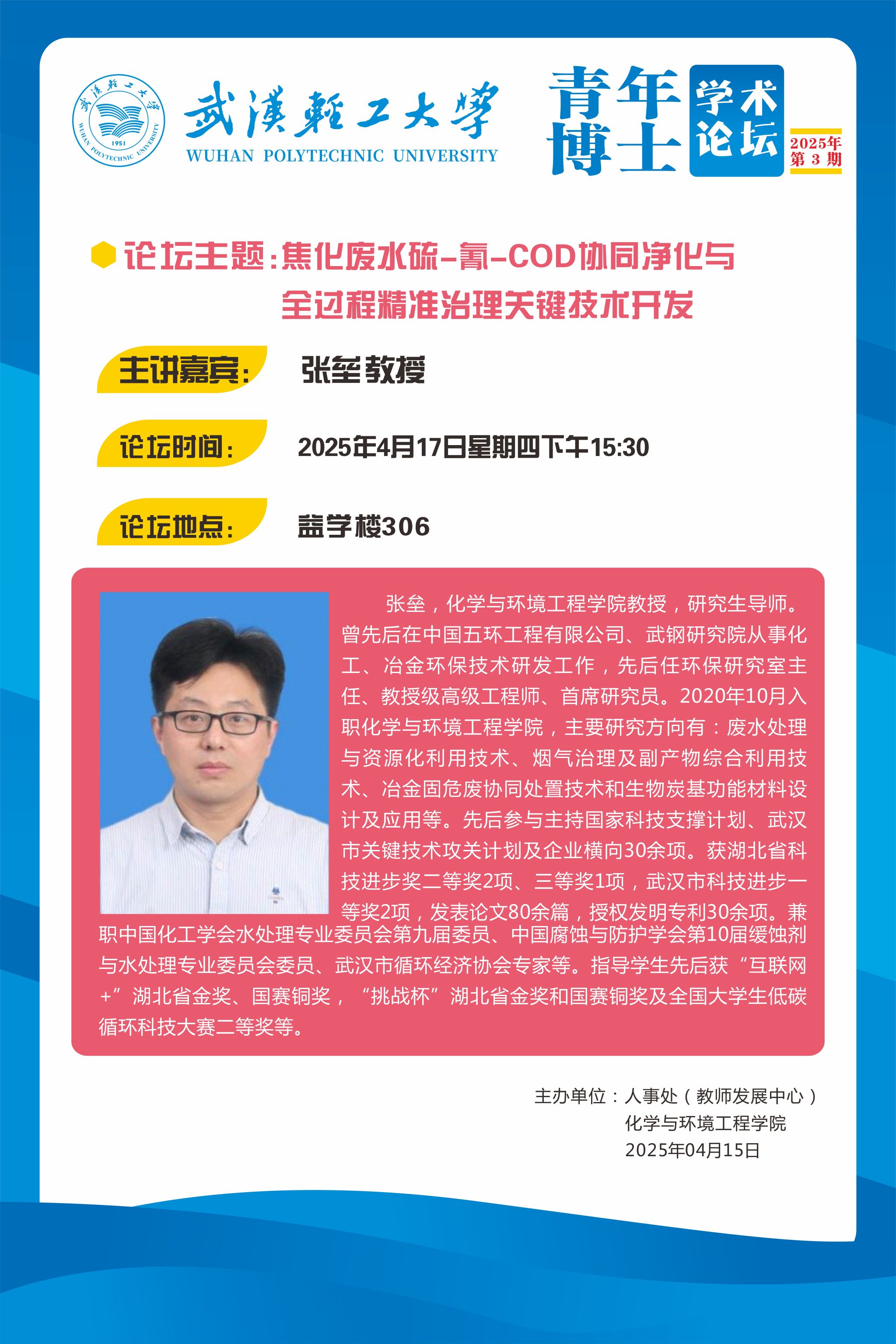青年博士学术论坛2025年第3期丨焦化废水硫-氰-COD协同净化与全过程精准治理关键技术开发