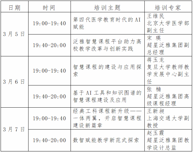 为深入贯彻落实《中共中央 国务院关于弘扬教育家精神加强新时代高素质专业化教师队伍建设的意见》《教育部等六部门关于加强新时代高校教师队伍建设改革的指导意见》等文件要求,根据全省教育大会精神及我校教师培训年度重点工作安排,人事处(教师发展中心)将于2025年3月5日至3月7日组织开展数智化与人工智能赋能教育教学创新线上培训,现将有关事项通知如下: